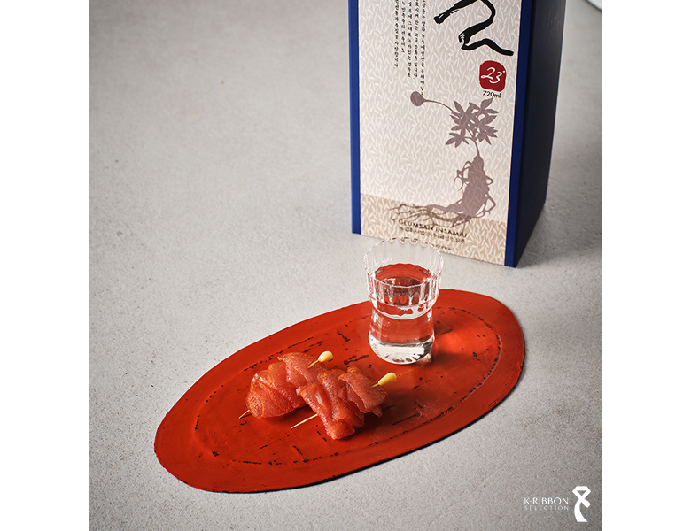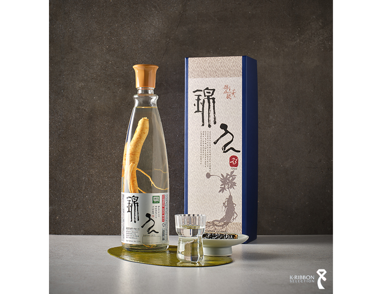 〈금산인삼주 수삼23〉은 대한민국 식품명인 제2호이자 충남 무형유산 제19호 금산인삼백주 보유자인 김창수 명인이 빚은 고급 전통주입니다. 소주에 인삼을 넣어 우려내는 술과는 전혀 다른 인삼주로, 쌀과 누룩, 잘게 분쇄한 인삼을 저온 발효 후 증류해, 인삼 특유의 쌉쌀한 향과 은은한 단맛이 고스란히 살아 있습니다.