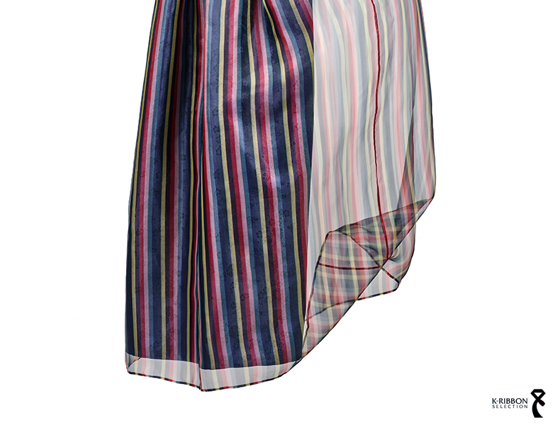 색동 패턴의 오간자 (폴리에스터/실크 혼방) , 전통 양단 소재 <국내 생산>