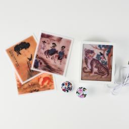 This plate and teapot are set in a single tone to achieve uniformity, while the tone of each tea cup varies, making them the focal point of the set.